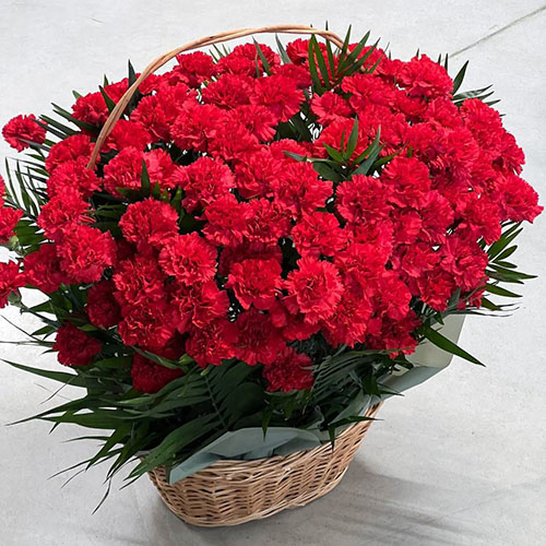 100 гвоздик в корзине